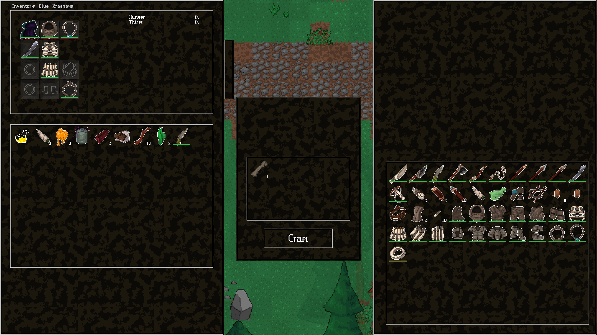 Question: What are the Items used for? Like the pelts, snake skin, the tendons and bones? I feel as though you would be able to make armor out of it but maybe in a later update. Since that would be a whole new system to make. BUT all gud just thought I'd ask since theres a chance maybe you respond back. I don't usually Comment but, I LOVE this game so far and hope to see it fully made :3